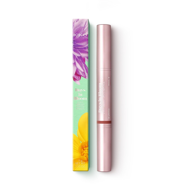 رژلب و مداد لب دوکاره کیکو میلانو مدل Days in Bloom با بافتی کرمی و رنگدهی قوی، لبها را با رنگی زنده و درخشش ساتن زیبا برجسته میکند. این محصول که تستشده از نظر پوستی است، با عصاره گل رز هیبرید و رایحهی ملایم شکوفه پرتقال، پوششی بالا و حس نرمی را تنها با یک بار استفاده فراهم میسازد. مداد لب با نوک دقیق و بافت روان، فرم لب را بهخوبی مشخص کرده و ماندگاری رژلب را افزایش میدهد. طراحی استیکی و مکانیزم چرخشی این محصول، استفاده از آن را آسان و سریع، حتی در حرکت، ممکن میسازد.